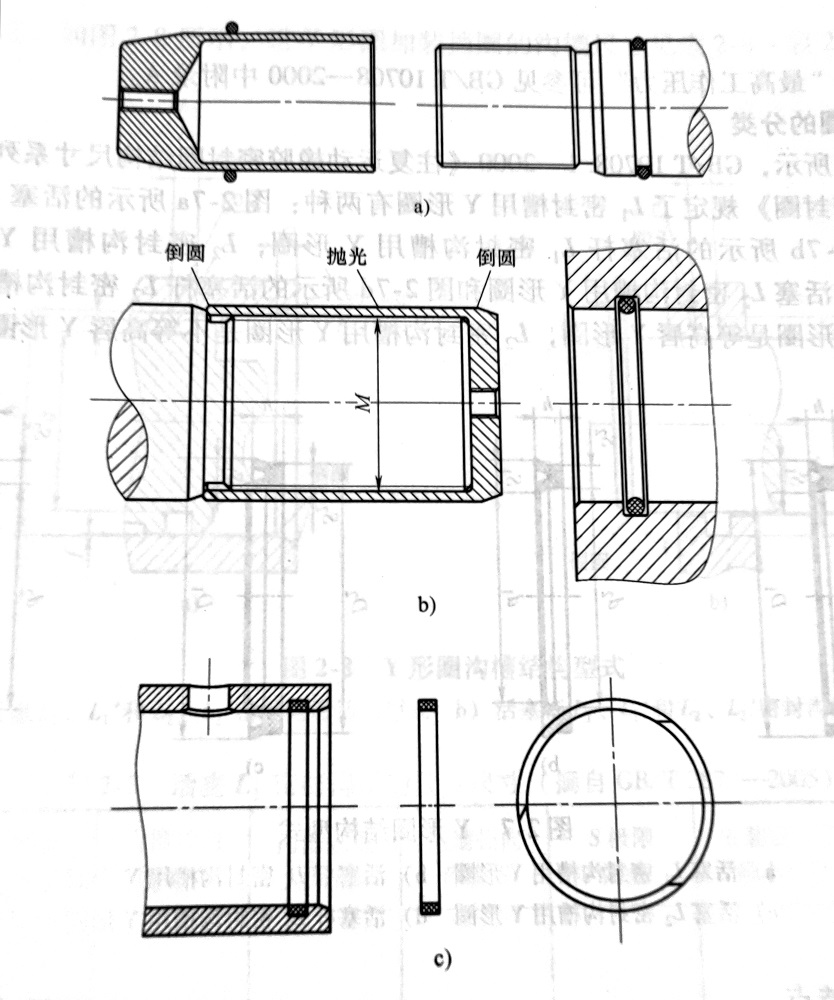 劃傷,擠裂,撕裂(切肉)、扭曲(扭轉(zhuǎn)、擰勁)等,造成O型圈劃傷的主要原因是零件各處倒角、倒圓表面粗糙或干脆就沒有倒角或倒圓。造成O型圈撕裂的主要原因是O型圈通過環(huán)形槽或通過垂直孔,典型案例比如:工程液壓缸內(nèi)卡鍵連接缸蓋安裝,O型圈既要通過卡鍵槽,又要通過油口孔流道,如果沒有安裝工具,每一個O型圈都會被切肉也就是撕裂。比如我們有一個3個人在維修一臺包裝機械液壓油缸,在安裝密封圈時因沒有安裝工具,從上午9點到下午3點共6個小時的時間安裝了四次全部失敗,最后還是現(xiàn)做了安裝工具才將液壓油缸修好。扭轉(zhuǎn)和擰勁主要是把O型圈安裝到溝槽內(nèi)時沒有捋順,一般沒有O型圈安裝經(jīng)驗的安裝人員,尤其是安裝孔用O型圈時都非常容易發(fā)生這樣的問題。